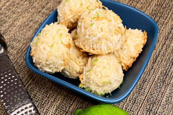 2-Using a medium size mixing bowl, add coconut, almond flour, lime zest and salt. Mix together. Then mix in the remaining ingredients.