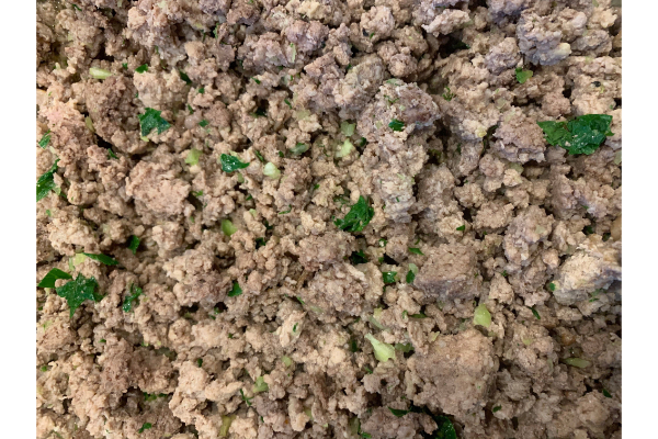 2-Using a large frying pan, saute the finely diced garlic and onion if using. Then ground the meat. Transfer it to a mixing bowl and add the finely chopped parsley and dill along with salt and red peppers (if using).