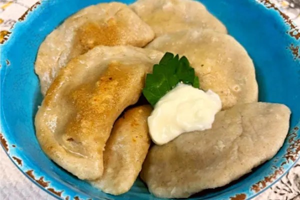 Helpful hints – If you don’t want to spend the time making the pelmeni but still want the dough, you can make it a top crust. The texture changes, but it saves you SO much time!β± Use a large frying pan to barely cook the meat, then transfer it to a casserole pan. Add the seasonings and half a cup of broth (any kind). Place the dough over the top and bake it at 350Β° for 15-20 minutes until the dough is to your liking. It’s all cooked so it depends on how you like the texture.