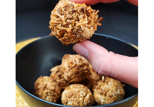 3-Using your hands, roll the coconut mix into 12 equal balls. Then lightly roll the balls in the flour as a coating.